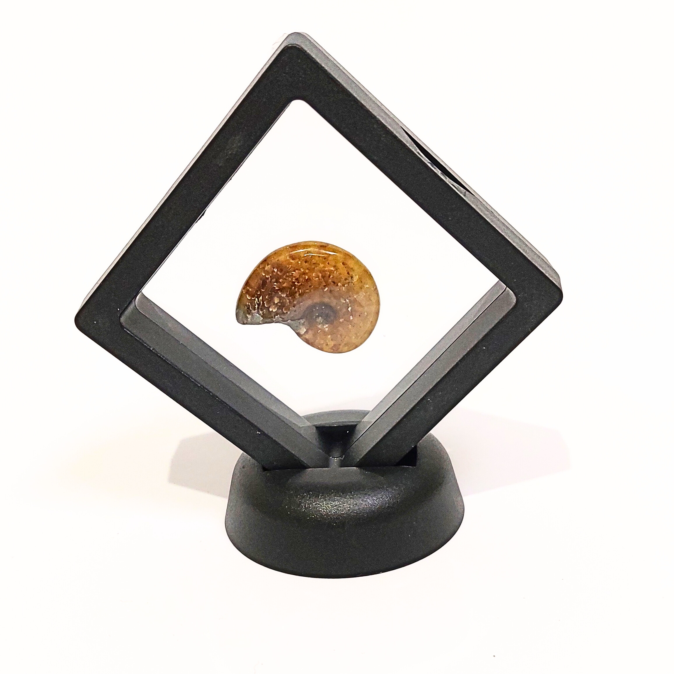A lebegőablak keret két rugalmas fóliája finoman tartja a helyén az ásványokat, fosszíliákat, így azok minden oldalról megtekinthetők, mintha lebegnének a térben. Egy talp is tartozik a kerethez, így biztos lábakon állhat a fosszíliaablakunk. Ideális dísz polcra, asztalra vagy akár az ablakba.