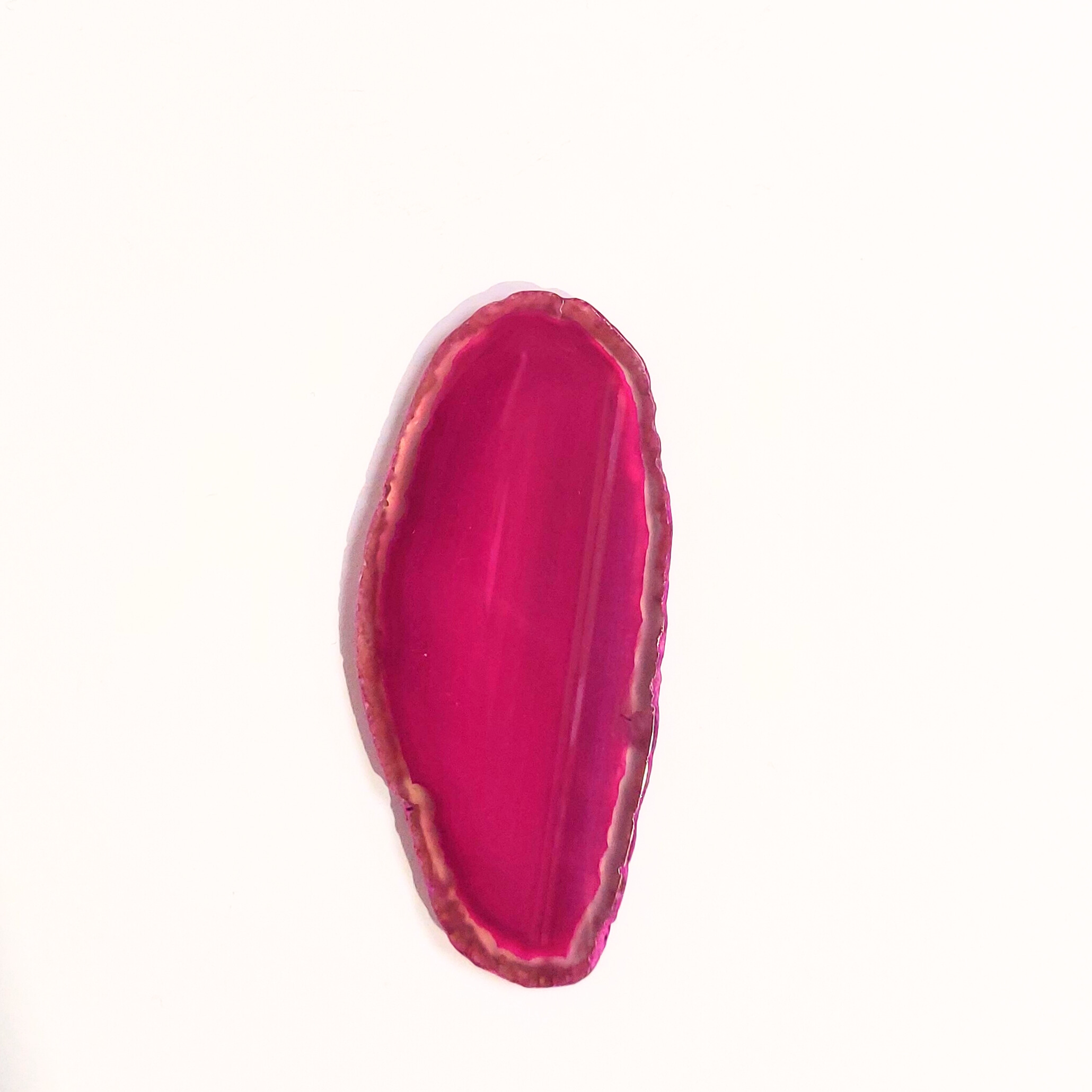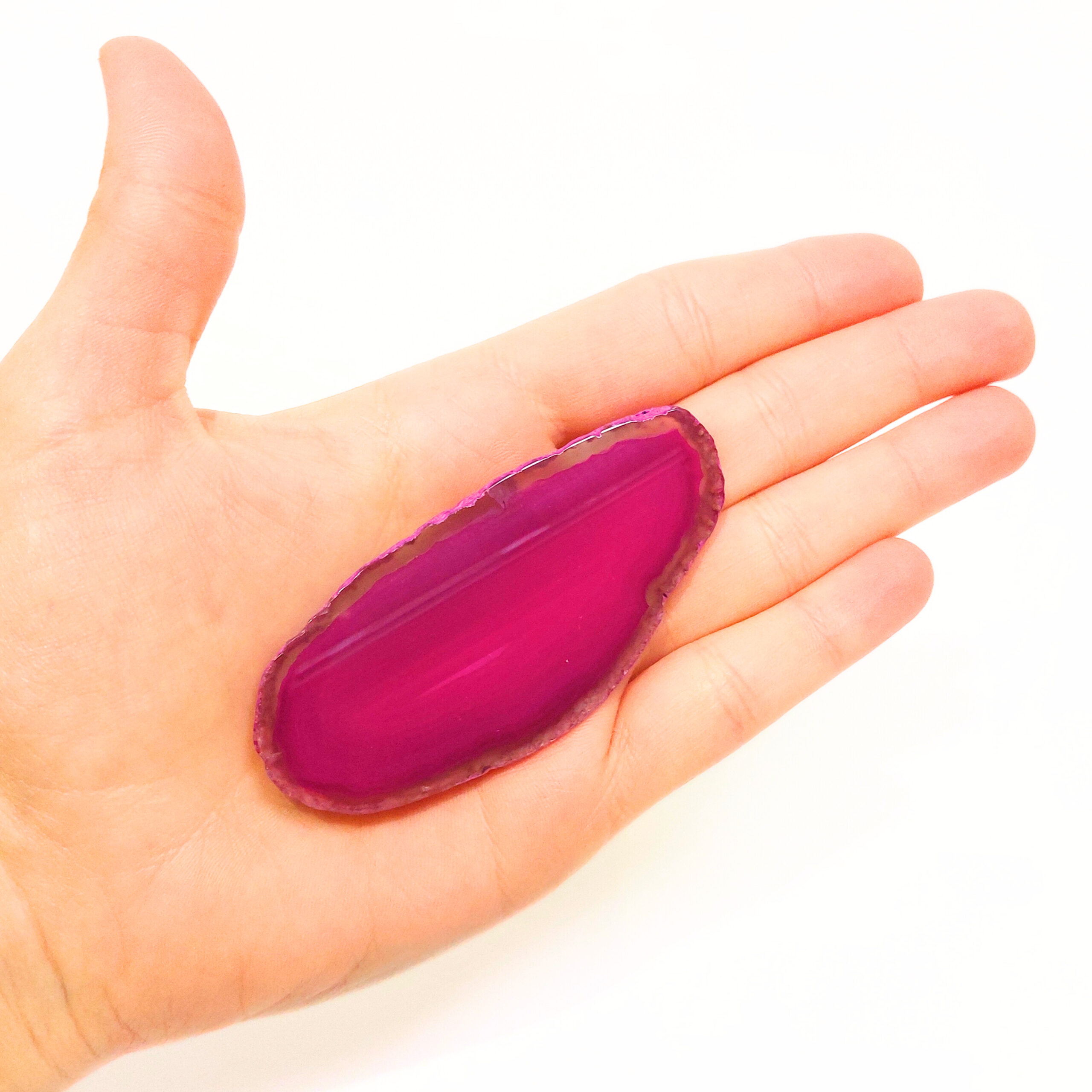 Az ACHÁT egy vulkanikus képződésű kvarc. Az achát geodából levágott szeletet nevezzük achát lapnak. Rengeteg változata van, de gyakran színezik, így például a pink, kék, zöld, lila színek általában nem az eredeti színük, de az ásvány kristályosodása, mintája így látványosabbá válhat. Ha megnézzük fény felé fordítva, akkor különösen szép.