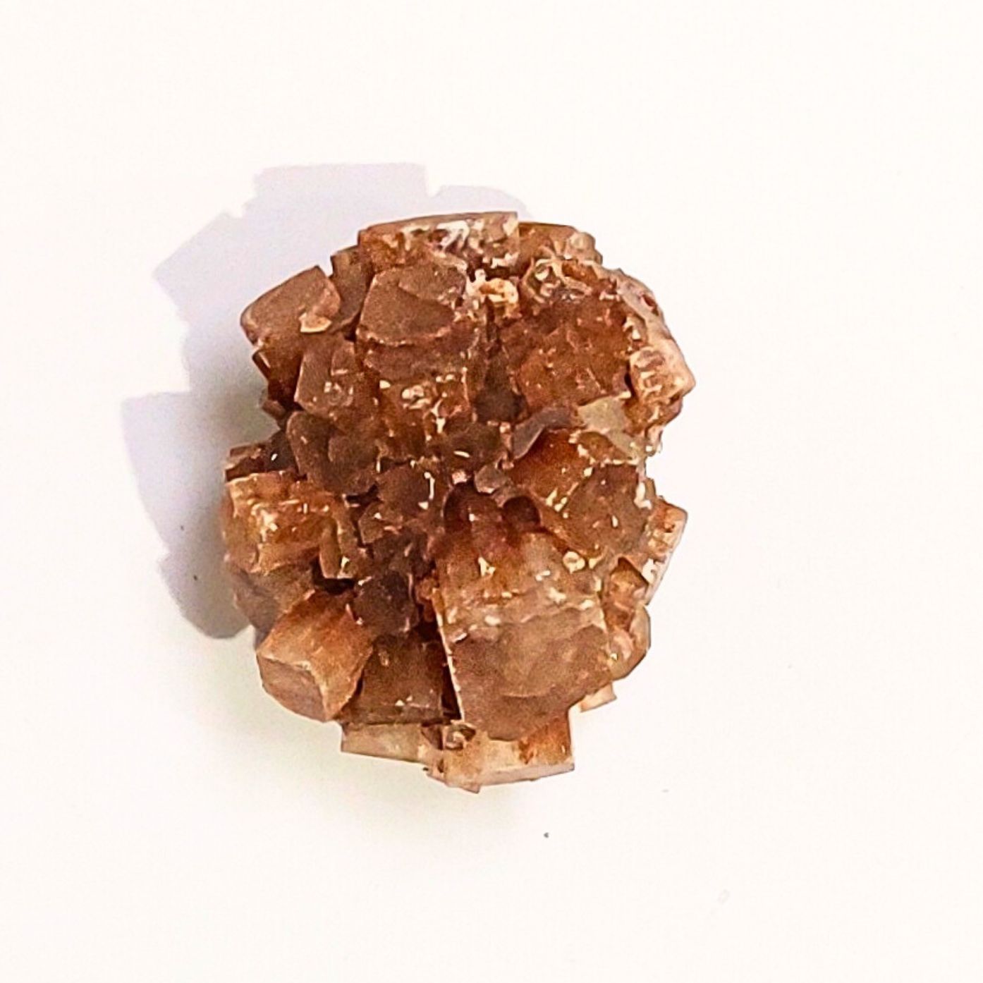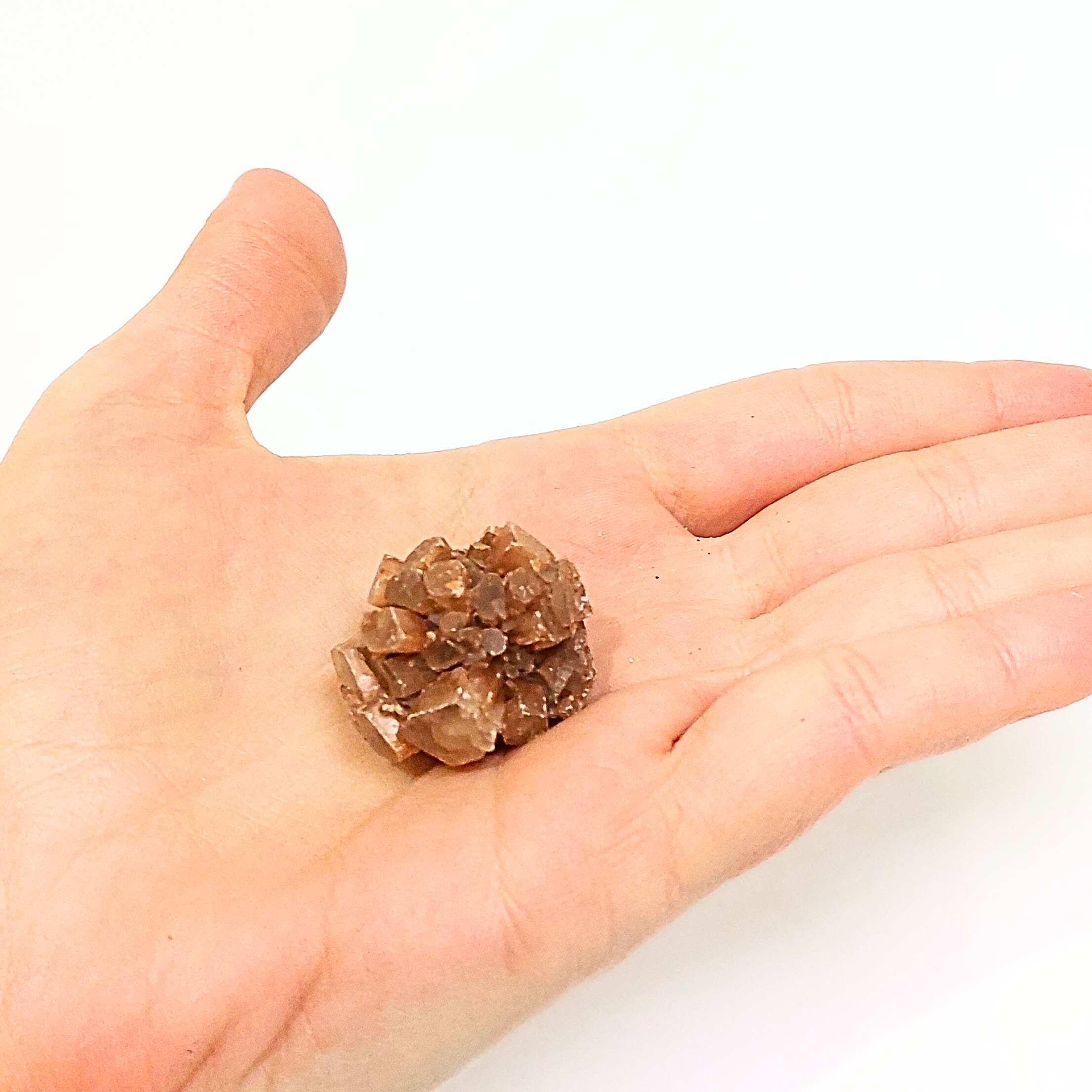 Az aragonit egy természetes kalcium-karbonát (CaCO₃) ásvány, amely általában tűszerű, oszlopos vagy gömbös kristályformában fordul elő. Színe változatos: lehet fehér, sárgás, barna, zöldes vagy kékes árnyalatú. Az aragonit gyakran alakul ki barlangokban, tengeri élőlények vázaiban, valamint hőforrások környezetében. Mohs-féle keménysége 3,5–4, így viszonylag puha ásványnak számít. Gyűjtemények kedvelt darabja egyedi kristályszerkezete és dekoratív megjelenése miatt. Származási hely: Marokkó.