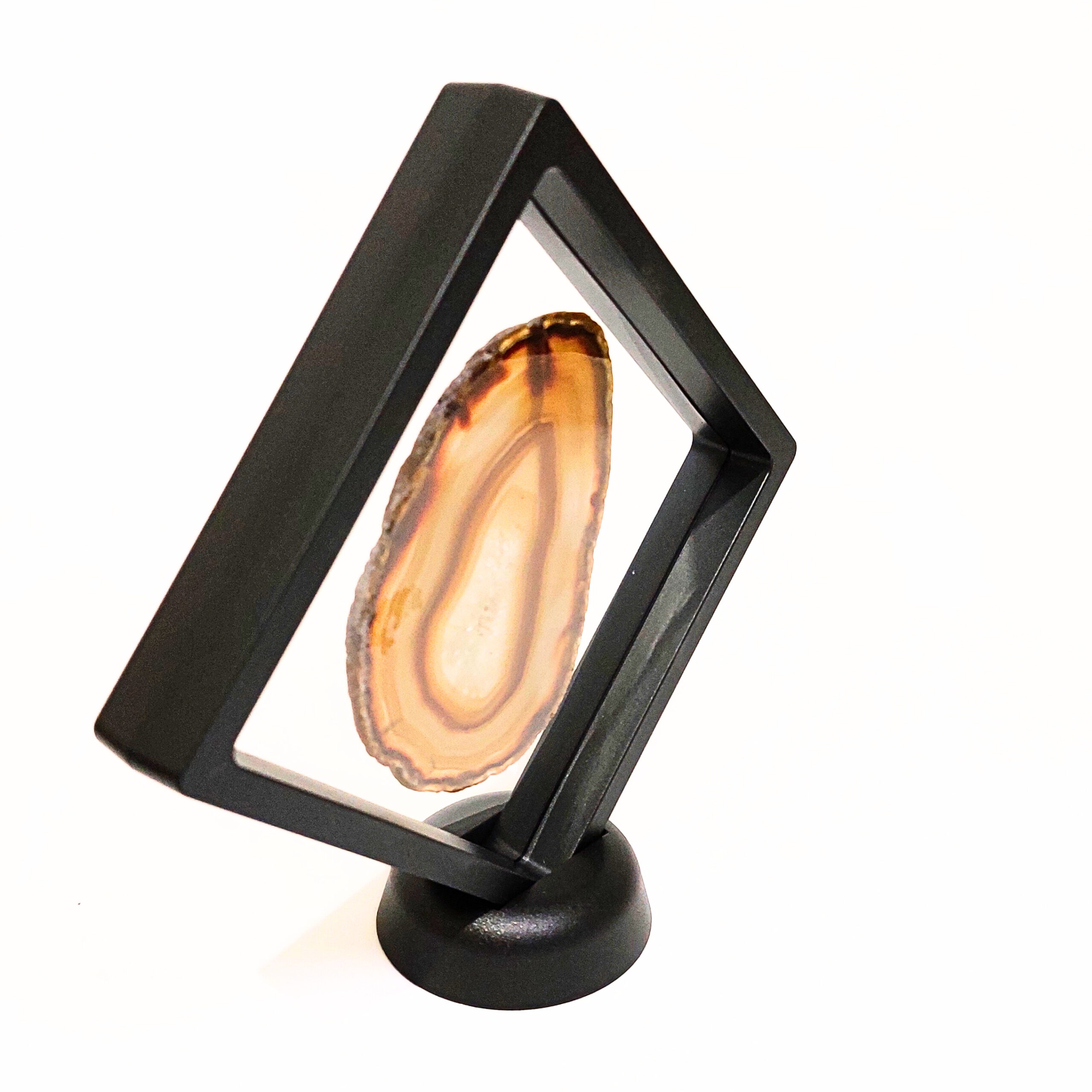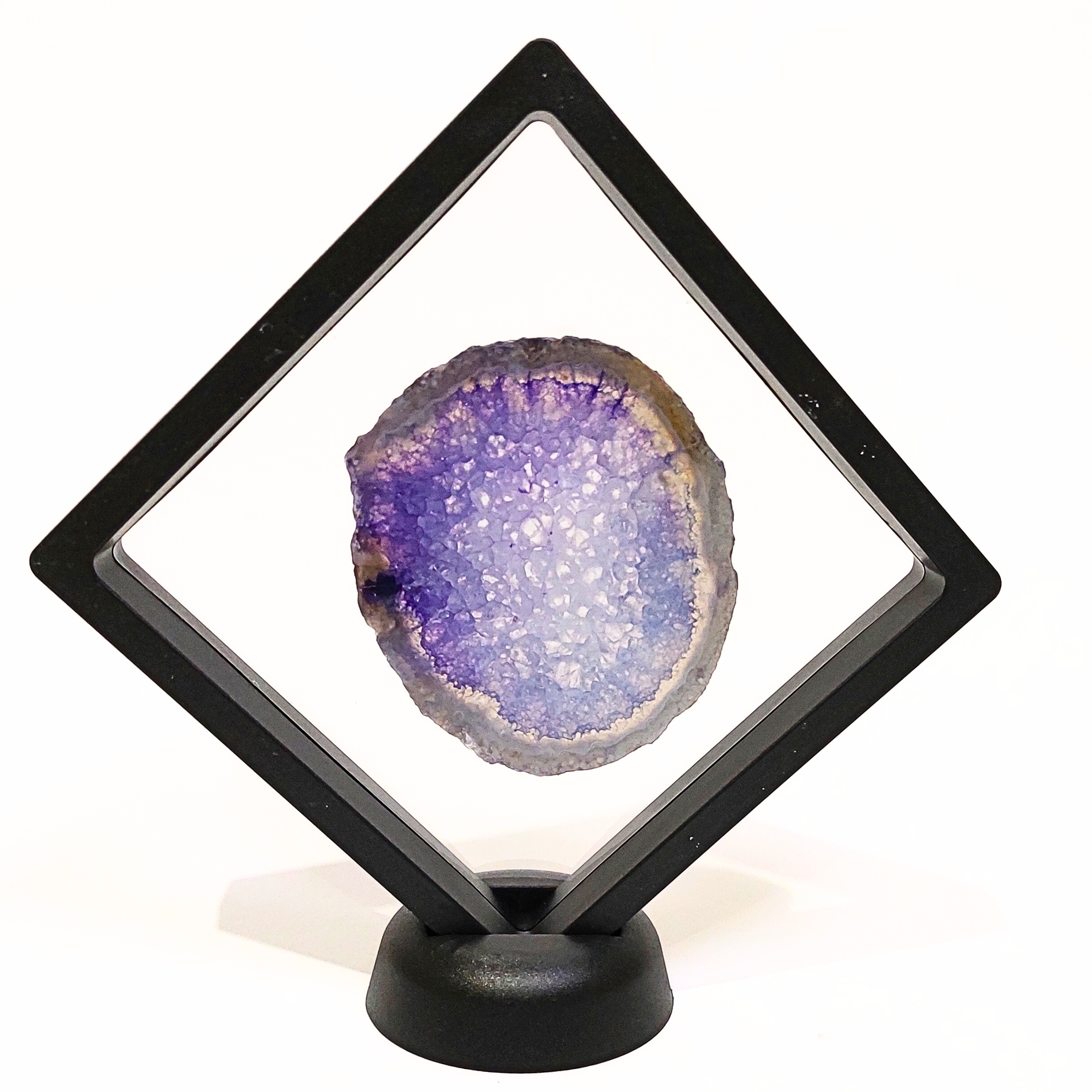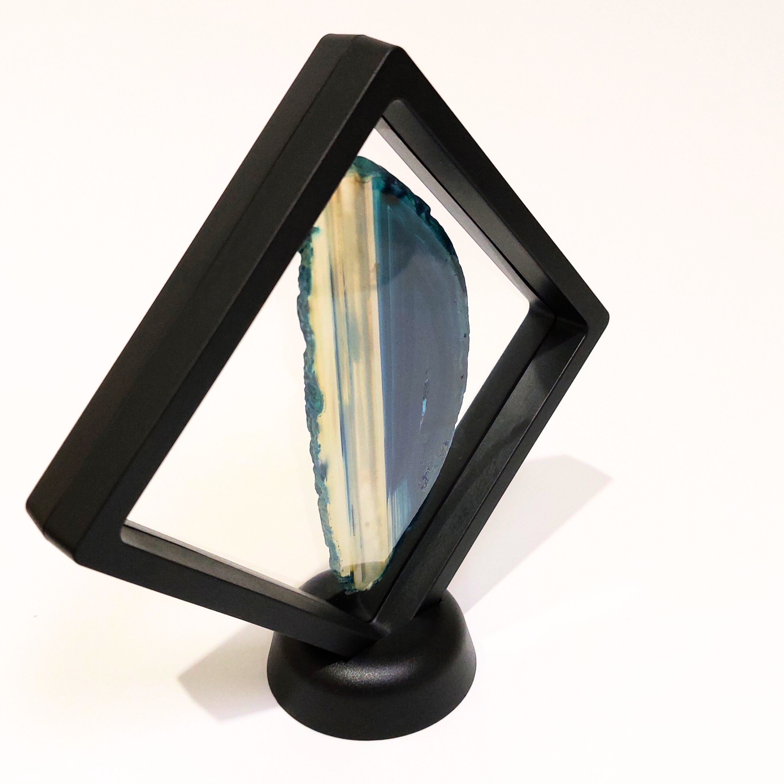 A lebegőablak keret két rugalmas fóliája finoman tartja a helyén az ásványokat, fosszíliákat, így azok minden oldalról megtekinthetők, mintha lebegnének a térben. Egy talp is tartozik a kerethez, így biztos lábakon állhat az ásványablakunk.