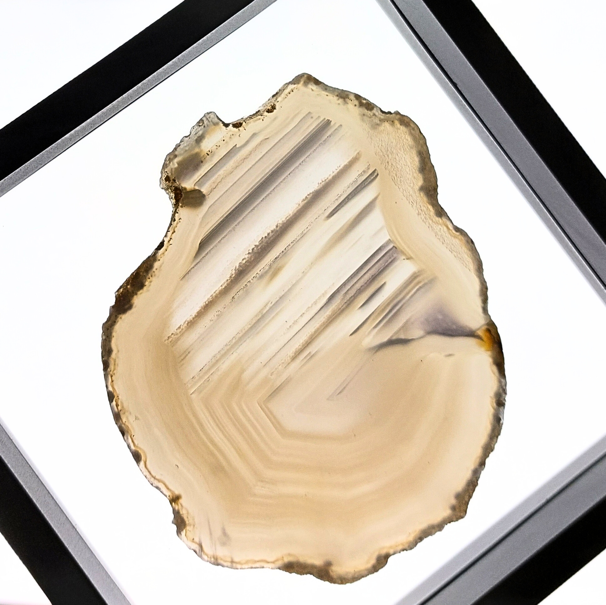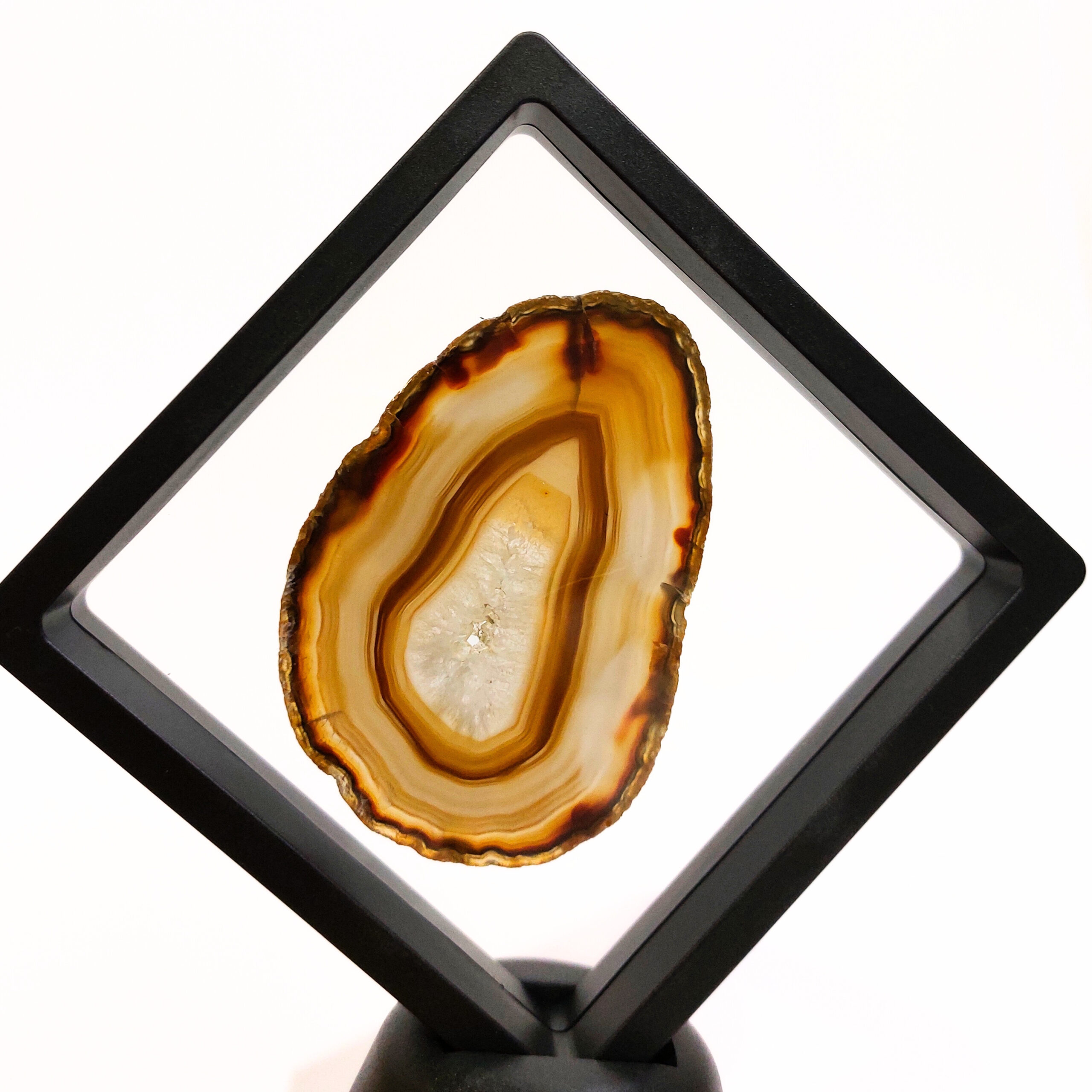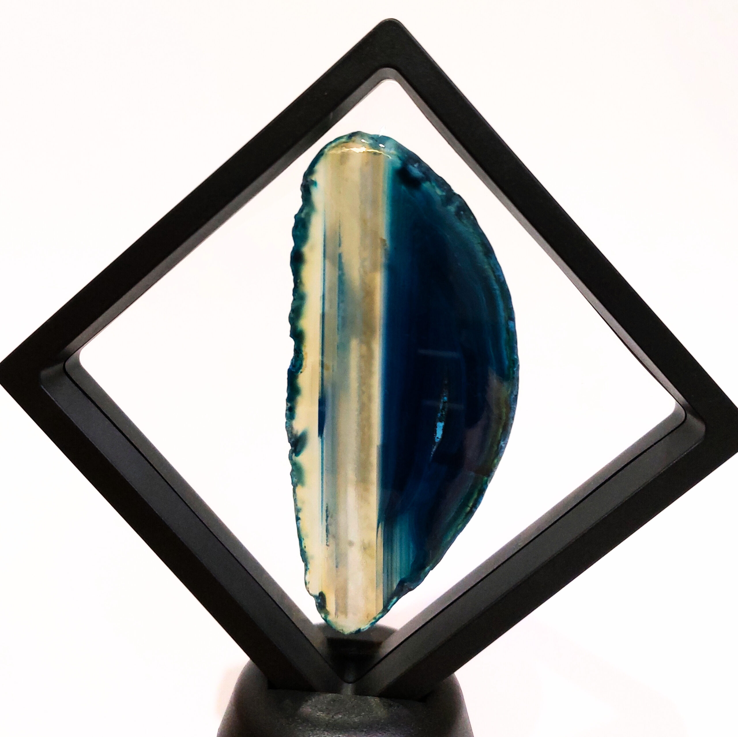 A lebegőablak keret két rugalmas fóliája finoman tartja a helyén az ásványokat, fosszíliákat, így azok minden oldalról megtekinthetők, mintha lebegnének a térben. Egy talp is tartozik a kerethez, így biztos lábakon állhat az ásványablakunk.