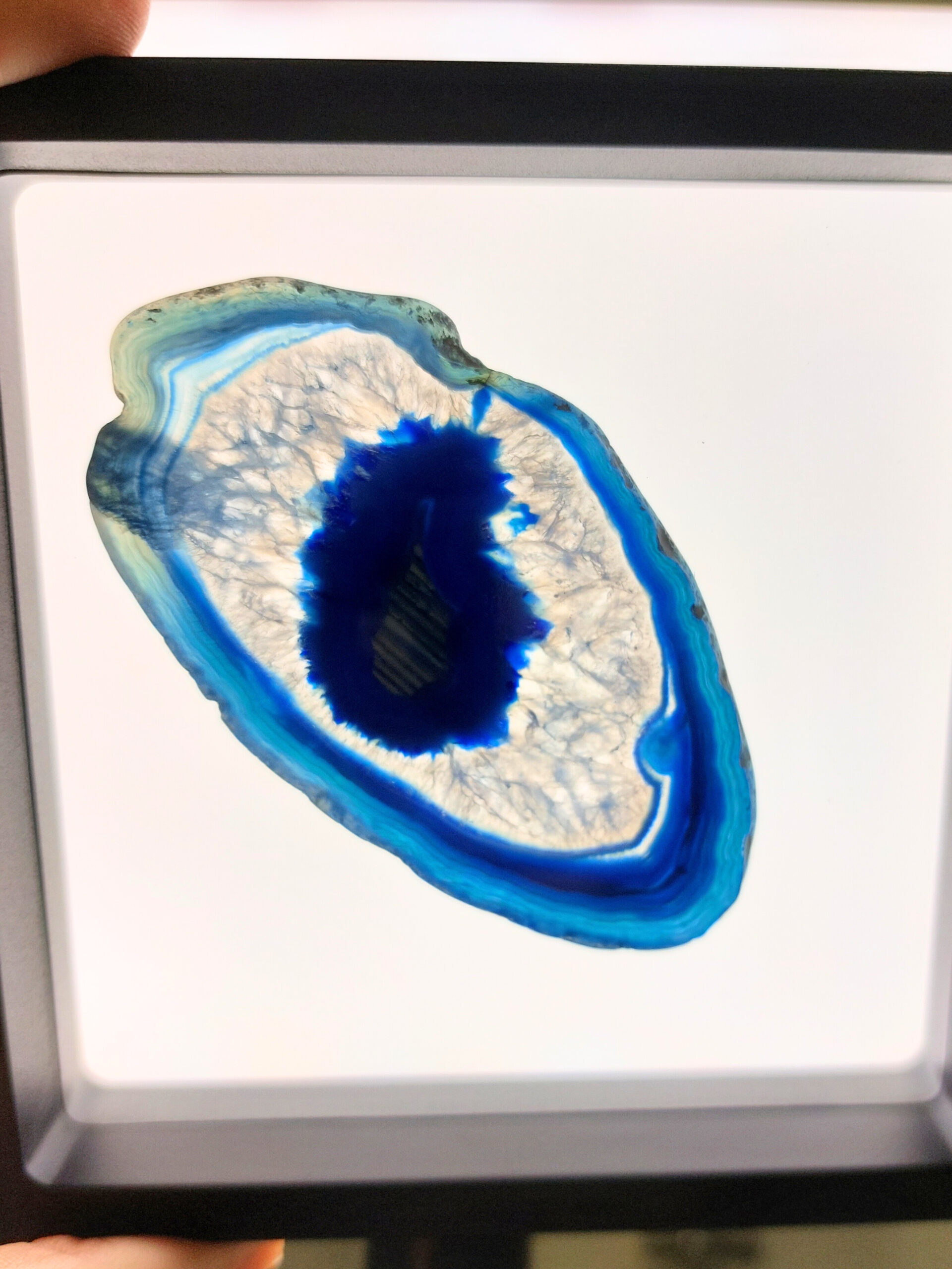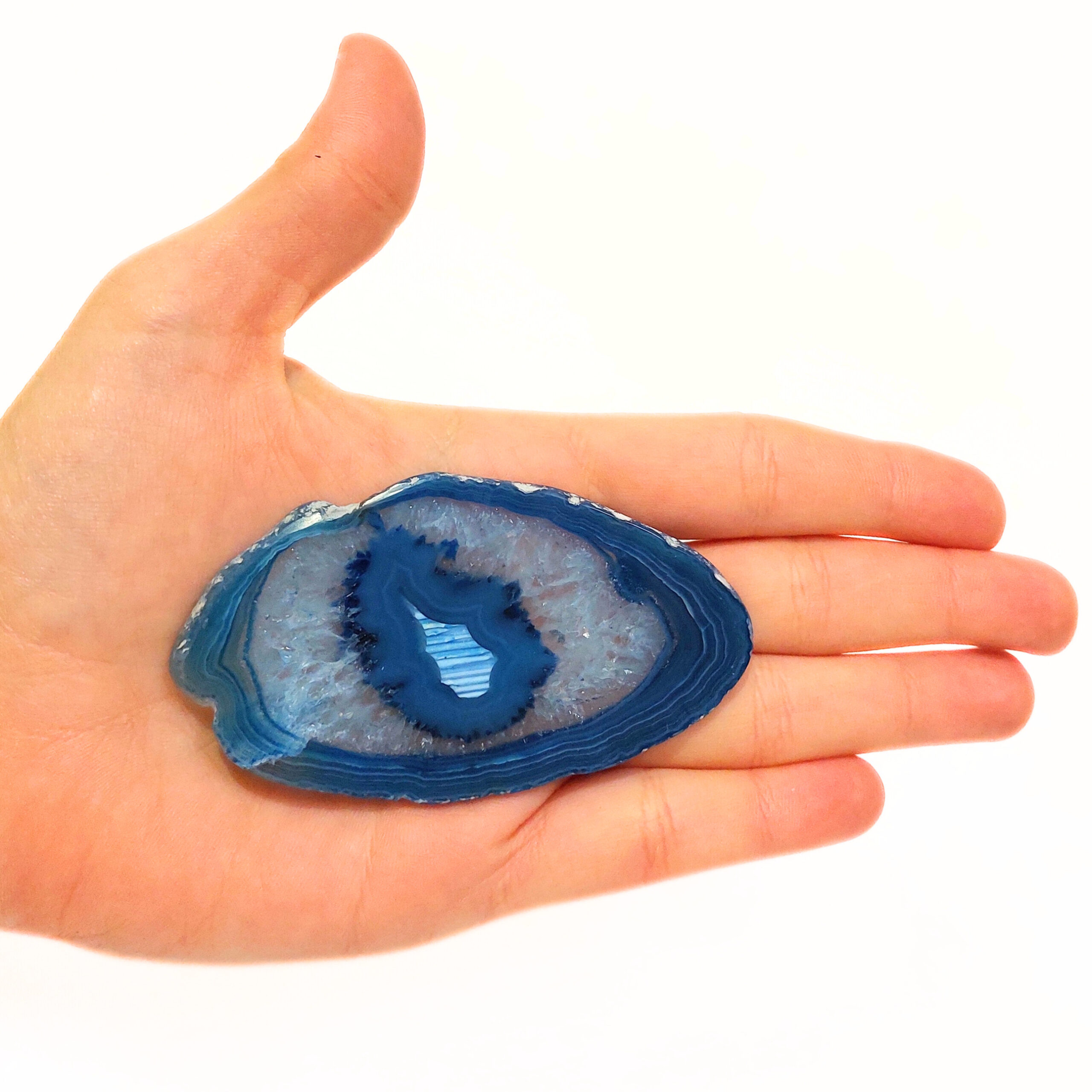 Az ACHÁT egy vulkanikus képződésű kvarc. Az achát geodából levágott szeletet nevezzük achát lapnak. Rengeteg változata van, de gyakran színezik, így például a pink, kék, zöld, lila színek általában nem az eredeti színük, de az ásvány kristályosodása, mintája így látványosabbá válhat. Ha megnézzük fény felé fordítva, akkor különösen szép.