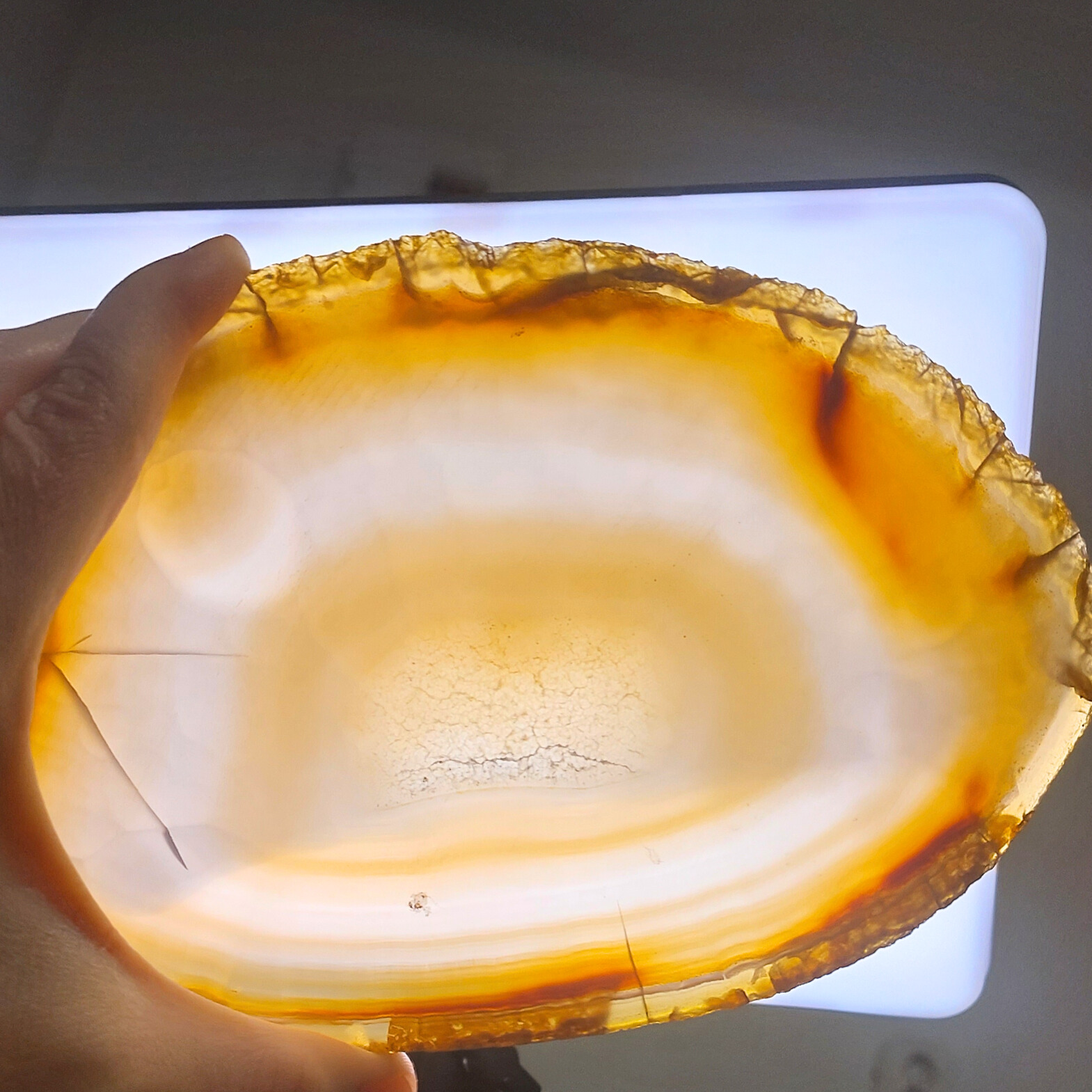 Az ACHÁT egy vulkanikus képződésű kvarc. Az achát geodából levágott szeletet nevezzük achát lapnak. Rengeteg változata van, de gyakran színezik, így például a pink, kék, zöld, lila színek általában nem az eredeti színük, de az ásvány kristályosodása, mintája így látványosabbá válhat. Ha megnézzük fény felé fordítva, akkor különösen szép.